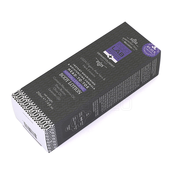 이노랩 바디로션 210ml 업체명 이노코스마 오가닉스 분류 단상자 사양 RIV 350g, 4도 인쇄, 무광 라미네이팅, 맞뚜껑 단상자 특징 직립 거치를 위해 하단부 특수 가공 처리 되었습니다.