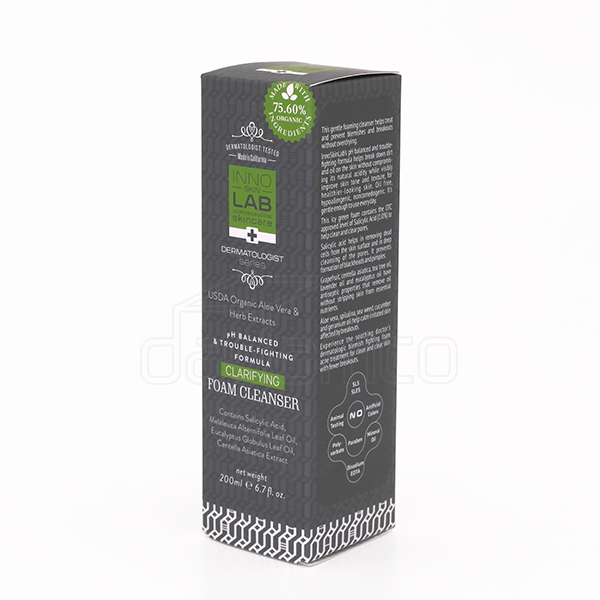 이노랩 클리어파잉 폼 클렌저 업체명 이노코스마 오가닉스 분류 단상자 사양 RIV 350g, 4도 인쇄, 무광 라미네이팅, 맞뚜껑 단상자 특징 직립 거치를 위해 하단부 특수 가공 처리 되었습니다.
