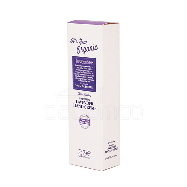 ZOE 라벤더 핸드크림 (신형) 업체명 ZOE 오가닉스 분류 단상자 사양 RIV 350g, 2도 별색인쇄, 무광 라미네이팅, 맞뚜껑 단상자 특징 내츄럴한 느낌을 위해 RIV 종이 후면에 인쇄한 제품입니다.