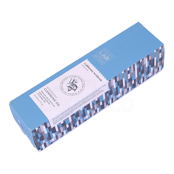 이노랩 클렌징 오일 200ml 업체명 이노코스마 오가닉스 분류 단상자 사양 RIV 350g, 2도 별색인쇄, 무광 라미네이팅, 은박, 맞뚜껑 단상자 특징 직립 거치를 위해 하단부 특수 가공 처리 되었습니다.