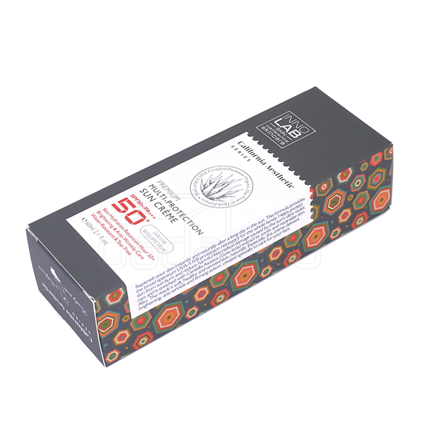 이노랩 멀티프로텍션 썬크림 업체명 이노코스마 오가닉스 분류 단상자 사양 RIV 350g, 4도 인쇄, 무광 라미네이팅, 은박, 맞뚜껑 단상자 특징 직립 거치를 위해 하단부 특수 가공 처리 되었습니다.