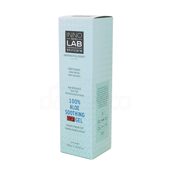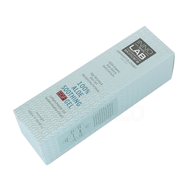 이노랩 알로에 수딩 겔 500ml 업체명 이노코스마 오가닉스 분류 단상자 사양 RIV 350g, 4도 인쇄, 무광 라미네이팅, 맞뚜껑 단상자 특징 직립 거치를 위해 하단부 특수 가공 처리 되었습니다.